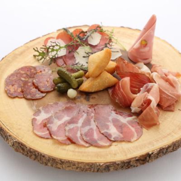 カッチャトーリノ、コッパ、生ハム、ピカンテサラミ、モルタデッラ、パルミジャーノ・レッジャーノ、コッコリ