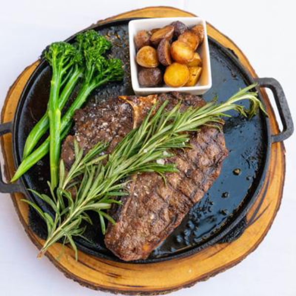 10オンス NYストリップステーキ、パルミジャーノ・レッジャーノ風味ポテトウェッジ添え