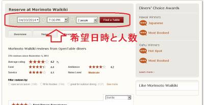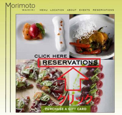 モリモト・ワイキキワイキキの予約は英語対応となりますが、ホームページにありますRESERVATIONをクリックして頂きますと、Resarve at Morimoto Waikikiのページとなります。