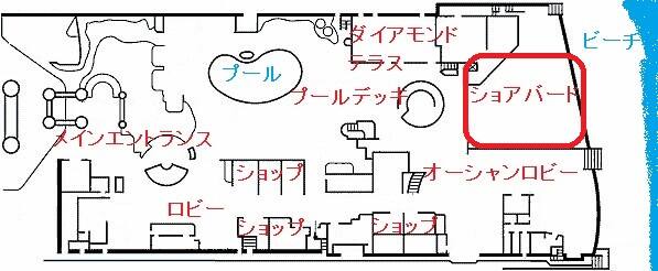 場所はメインエントランスからロビーを抜けてビーチに続くオーシャンロビーの左手にあります。