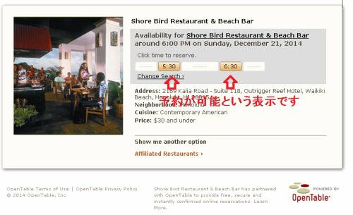 ショアバードのディナーでサンセット時間はなかなか空いていないので、予約を取るのは難しいことが多いのです。