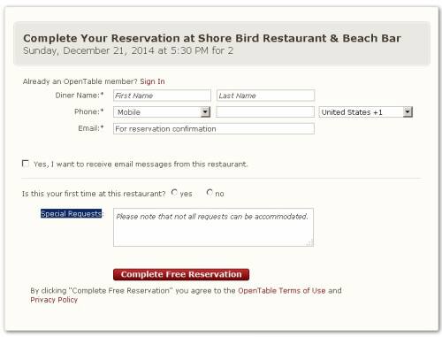 こちらにショアバード利用の希望の日と時間、利用人数を入れ、「Find a Table」をクリックします。
