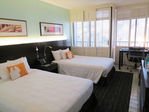 ワイキキパークホテルの部屋は29㎡という広さなのですが、ラナイに続く窓から見えるワイキキの景色により、部屋が実際よりも広く感じるのです。
