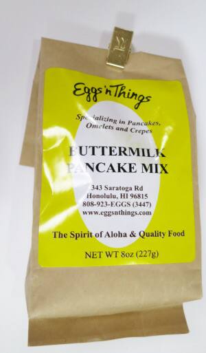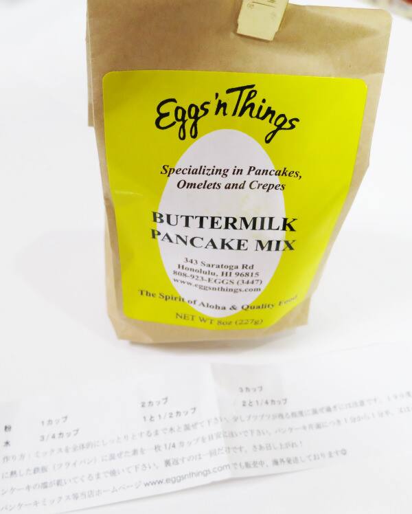 今回のハワイ旅行でもワイキキでエッグスンシングスのパンケーキを楽しみましたので、自宅でも同じ美味しいパンケーキができるかどうか試すためにパンケーキ粉を買って来ました。