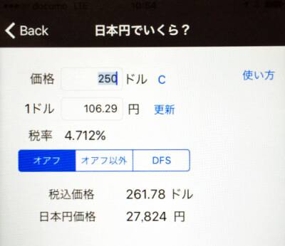 日本円でいくら?は価格を入れて、場所がオアフなのかそれ以外の島か、免税となるDFSかを選べば日本円での価格を表示してくれます。