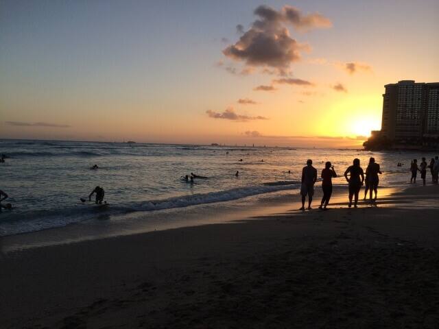 ハワイで最も華やいだ雰囲気のワイキキビーチでもサンセットを十分に楽しむことができます。