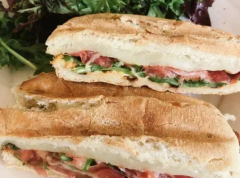 カップのスープまたはグリーンサラダとその日のパニーニの半分 10.95ドル