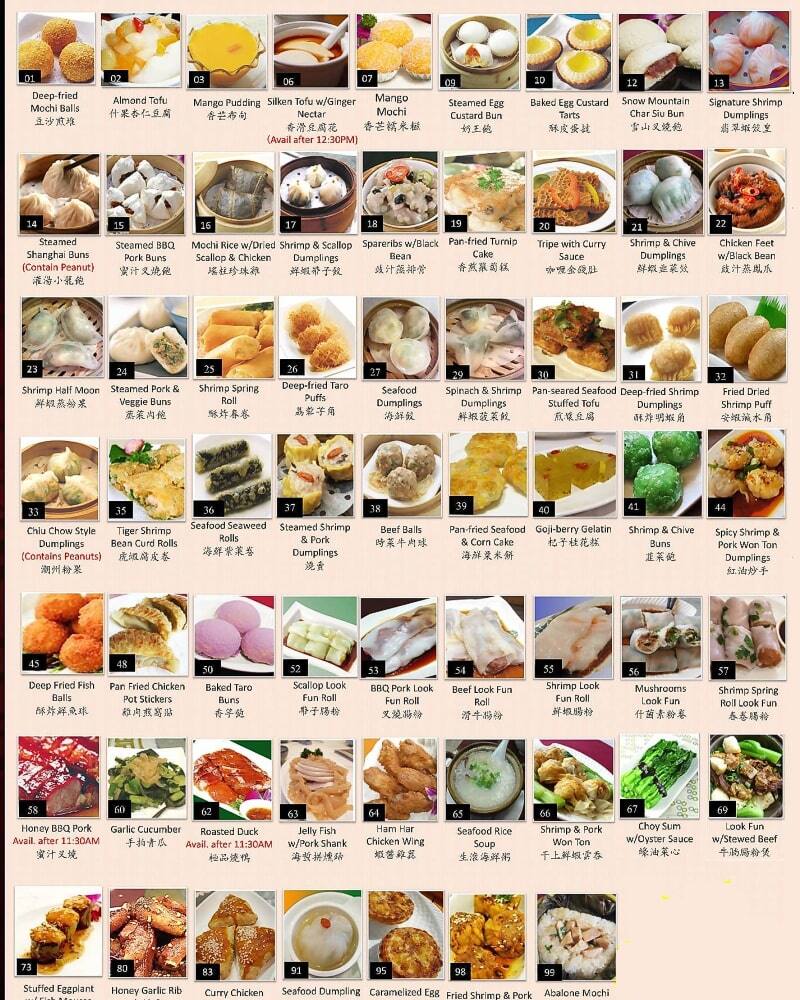 点心を注文するメニューは英語と中国語の表示となっていますが、画像がありますので注文は簡単にできます。