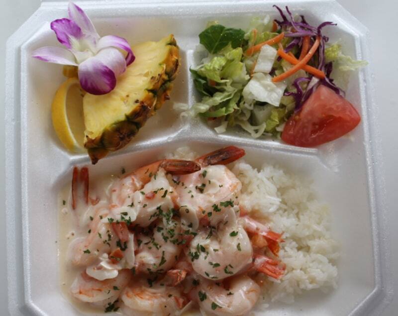 ノースショアやカフクまで行かなくてもおいしいガーリックシュリンプのプレートランチがワイキキで食べることができると人気になっているフードトラックのお店がケンズ・キッチンです。