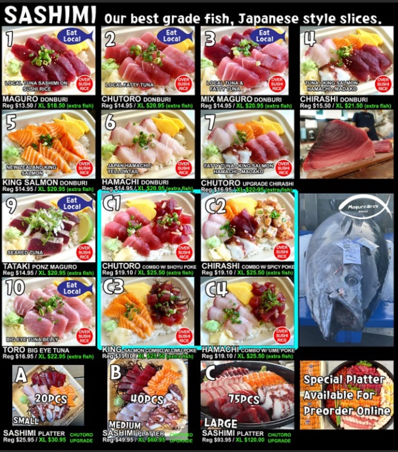 テイクアウトで食べることができるおいしいマグロなどのメニューは次となります。