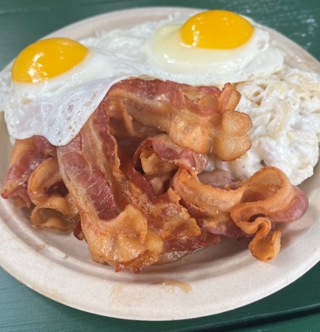 ポルトガルソーセージと卵2個プレート 10.5ドル