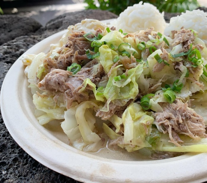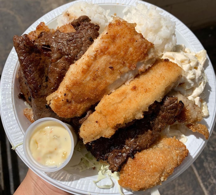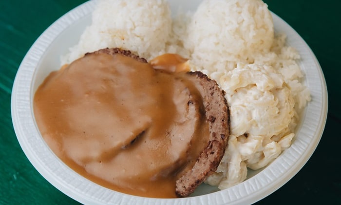 ハワイのプレートランチには定番のマカロニサラダが付いていて、ご飯も2杯も付いていることからボリューム満点のプレートランチとなっています。