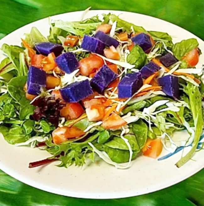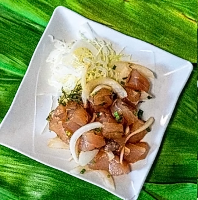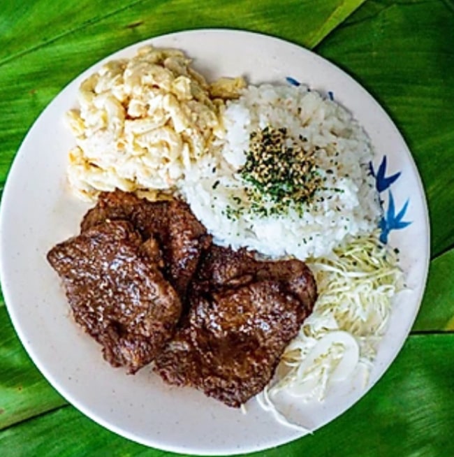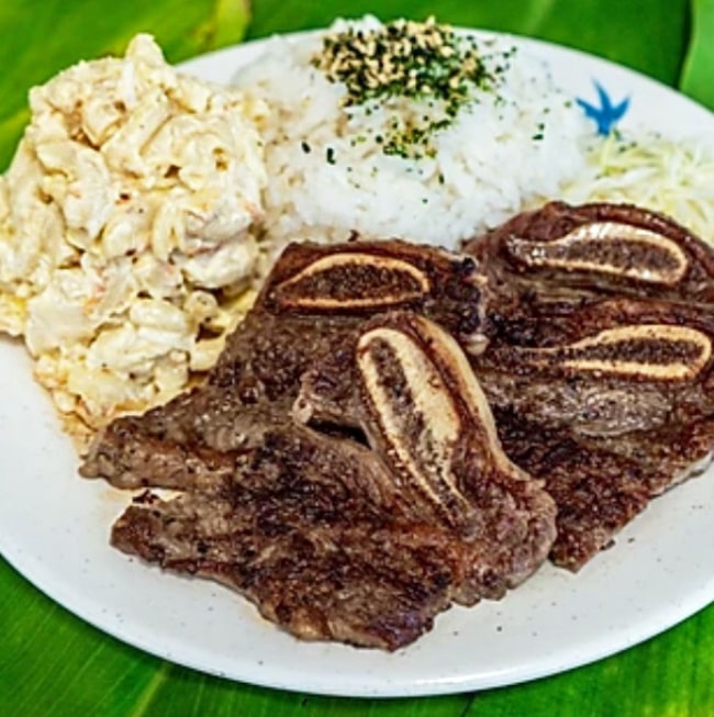 すべてのプレートにライスまたはポイ(スモールポイ+1.5ドル、ラージポイ+2.5ドル)、ロミサーモン、サツマイモまたはピピカウラまたはマカロニサラダ(季節限定)、ハウピアが付きます