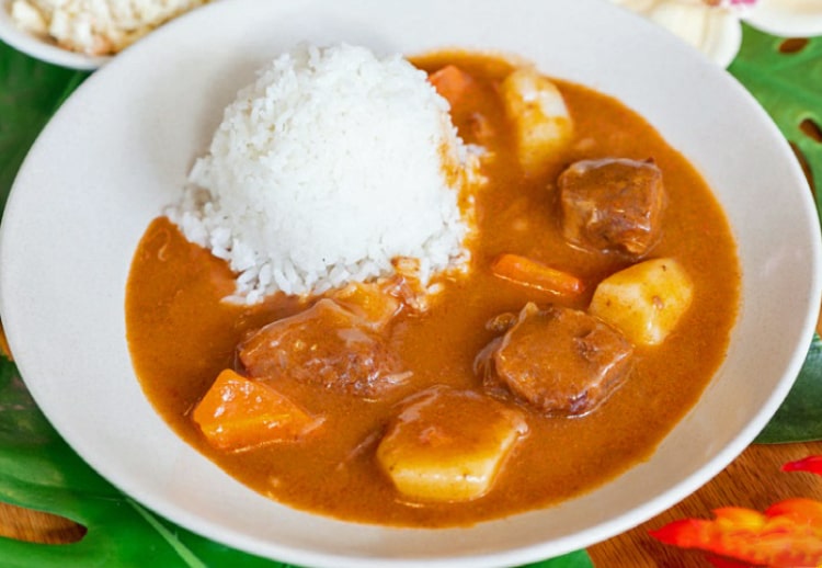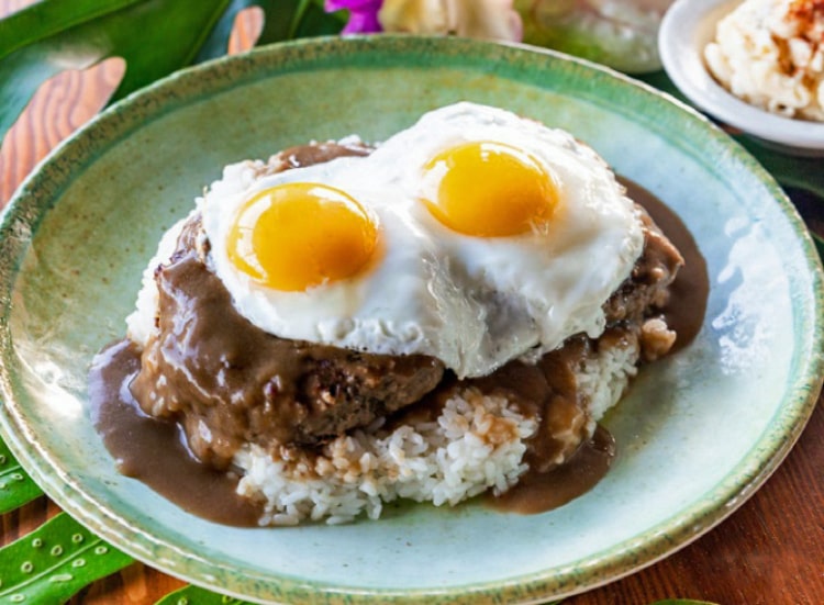 ポークまたはチキンのラウラウ、ビーフシチューのグレービーソース、地元産の卵1個、ロミサーモンのトッピング、サラダをお選びください