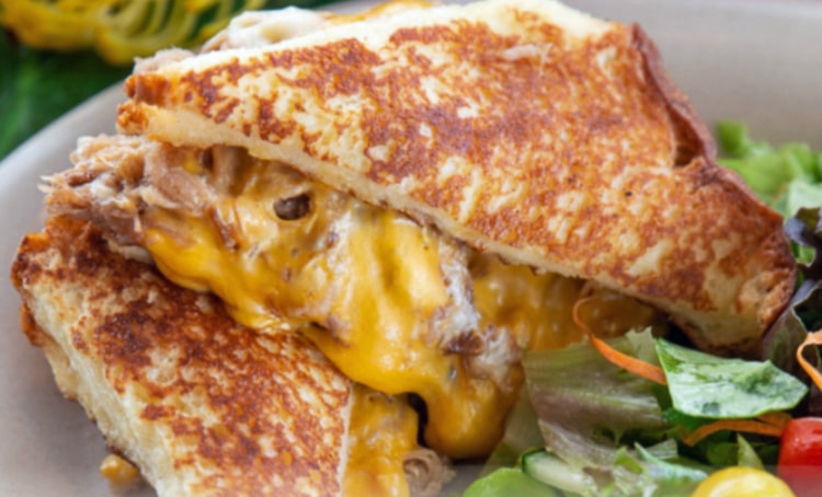 カルーアピッグとスイスチーズ、アメリカンチーズを2枚のフレンチトーストで挟んだサンドイッチ