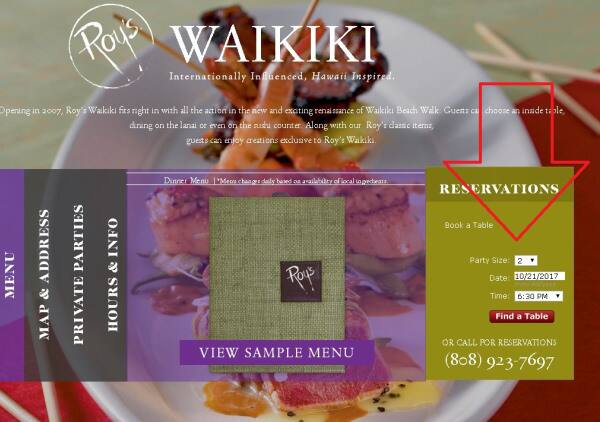 ロイズのホームページの検索は日本語ではなく英語でRoy's Waikikiと検索すればすぐにわかります。
