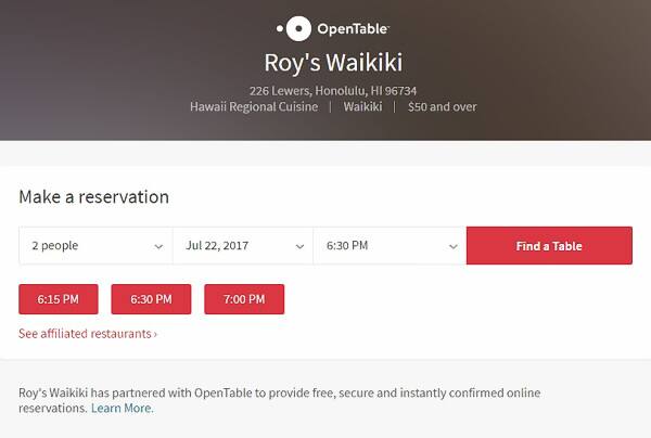 ロイズの予約はホームページだけからではなく、オープンテーブルのサイトからも予約することが可能となっています。