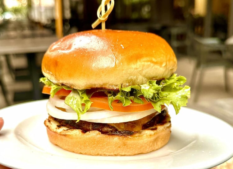 アンガスビーフパティ、チェダーチーズ、レタス、トマト、オニオン、ブリオッシュバンズ