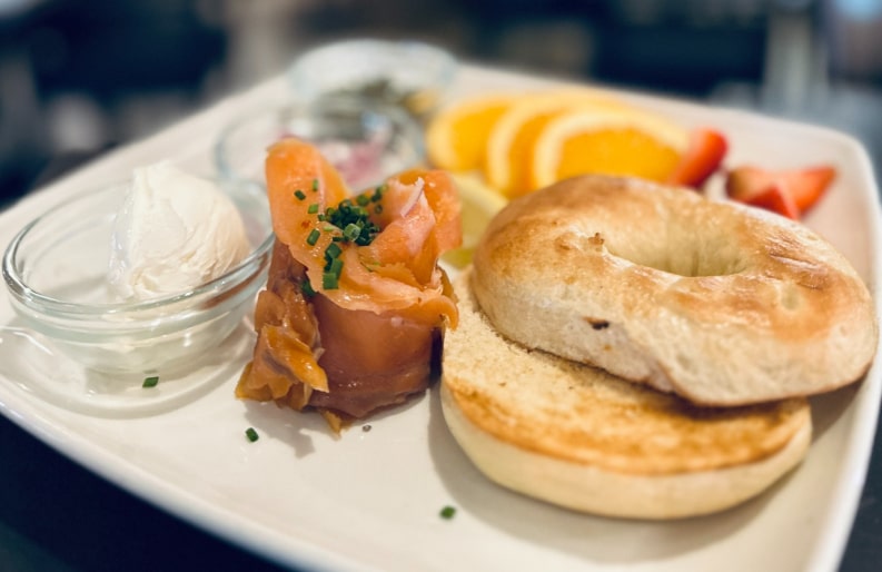 スモークサーモン、クリームチーズ、ケッパー、オニオン、 ベーグル