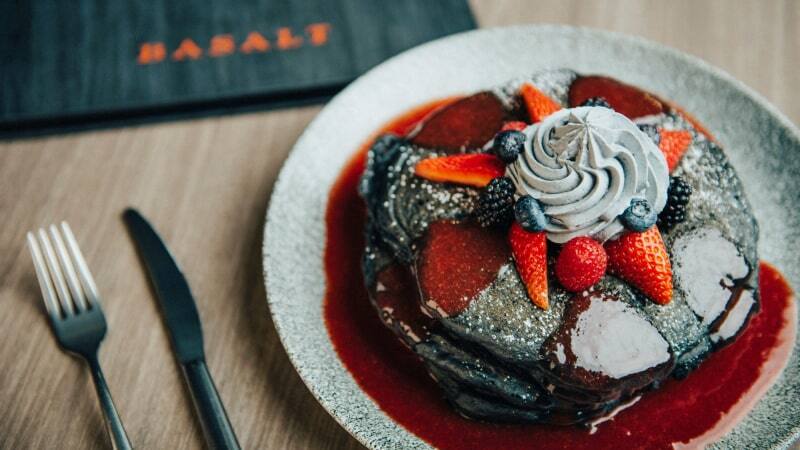 朝食ではココナッツの殻の炭を使ったチャコールバターミルクパンケーキが人気で、グアバストロベリーソースとミックスフレッシュベリーの味がマッチして美味しいのです。