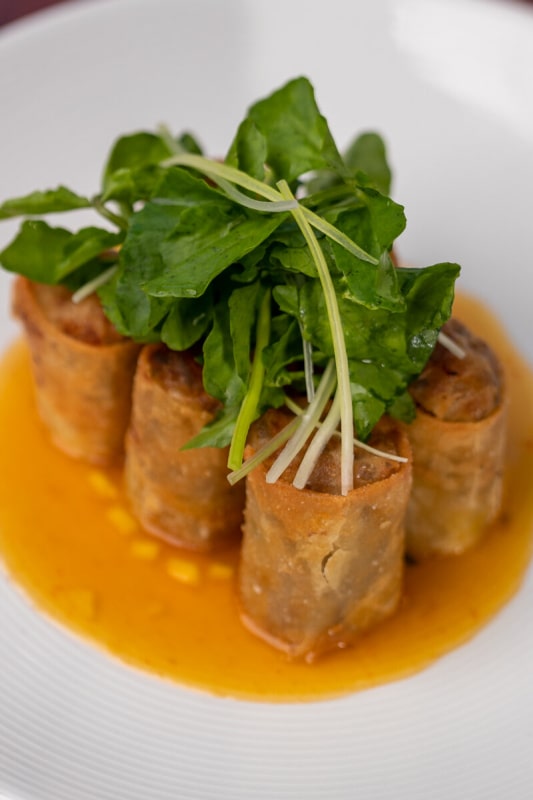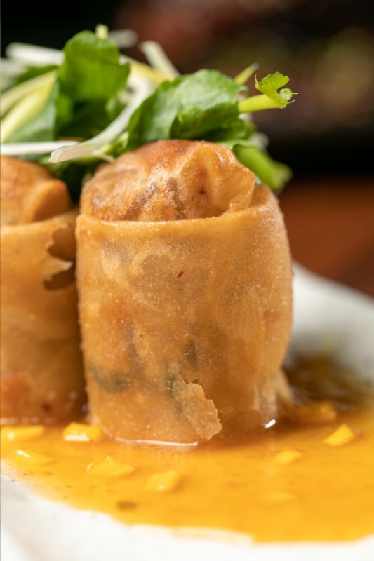 チキン春巻き、モンゴリアンリブ、スパイシーアヒの天ぷら