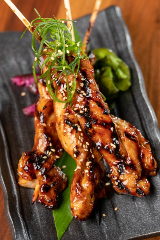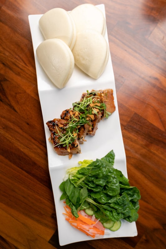 シェアのプププレート(チキン春巻き、カルビスタイル・チキン串焼き、ポークベリーバオ、モンゴリアンBBQリブ、クリスピースパイシーアヒ巻き、タイガーシュリンプ)