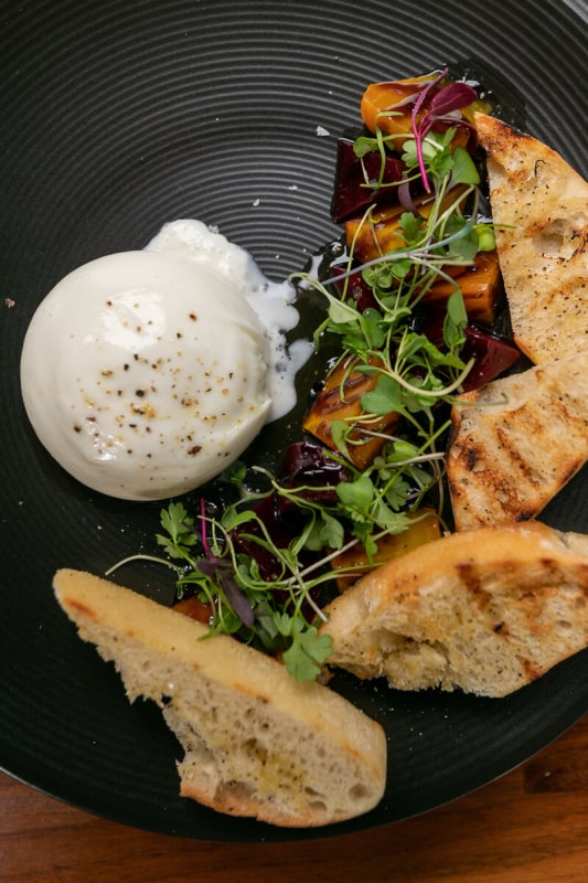 シェリー・ヴィネグレット、コティハ、ラディッシュ、クルミの砂糖漬け