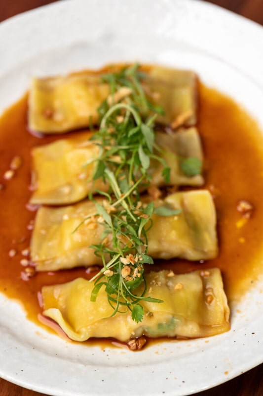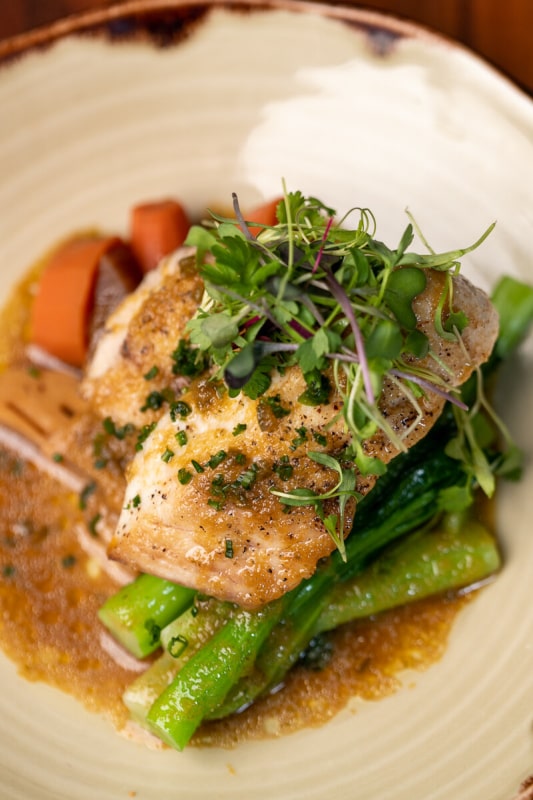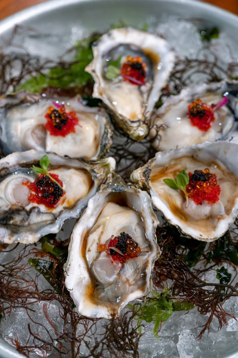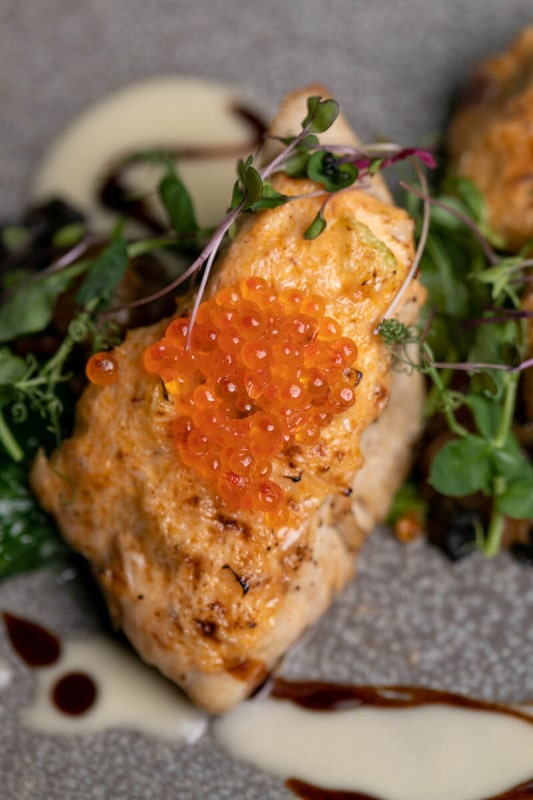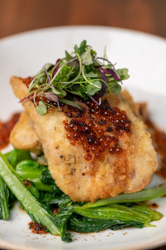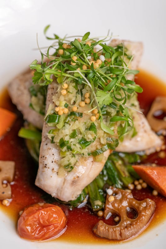 味噌グレイズドブラックコッド、ラスティックスパイス炙りアヒのタタキ、マカデミアナッツの天ぷらカンパチ