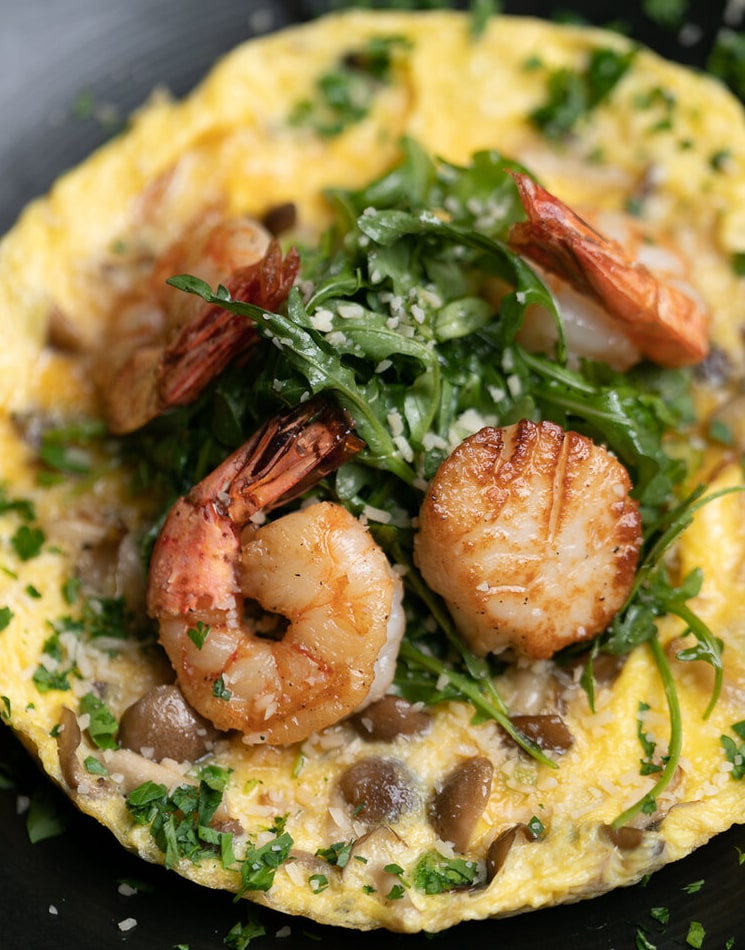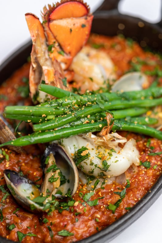 エビ、ホタテ、カニ、エンドウ豆、マッシュルーム、ミックスグリーン、ローストトマト