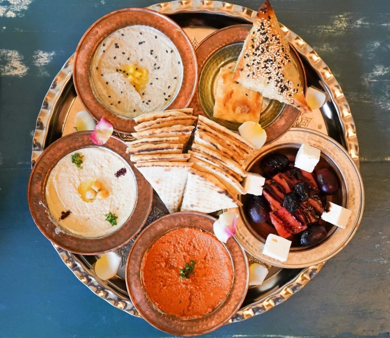 フムス、ムハンマーラ、ババガヌシュ、スベレク、スパナコピタ、スルタ風の口直し、ピタ