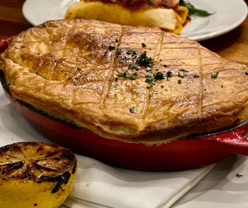 チキン、ヴルーテ、タマネギ、ニンジン、自家製バターミルクビスケット生地