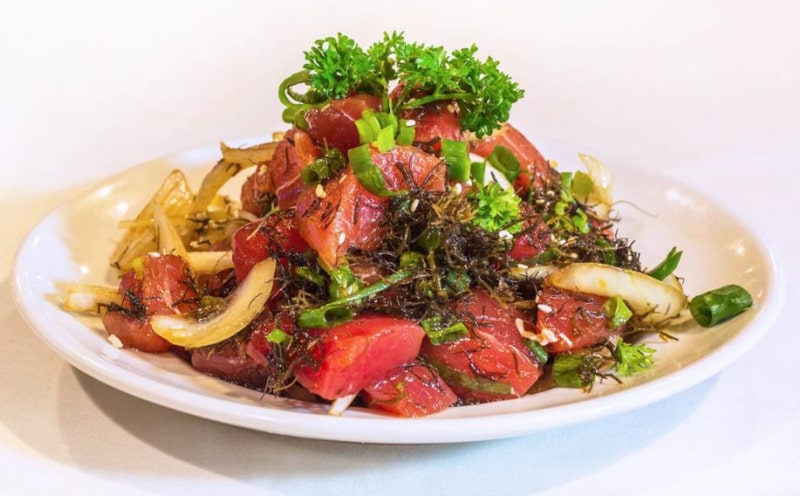 一押しメニューはアヒポケ、ポークチョップ、フライドライスです。