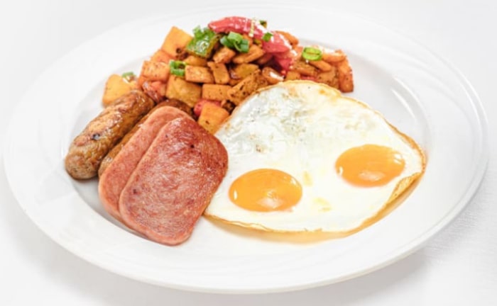 ベーコン、ソーセージリンク、スパム 8ドル