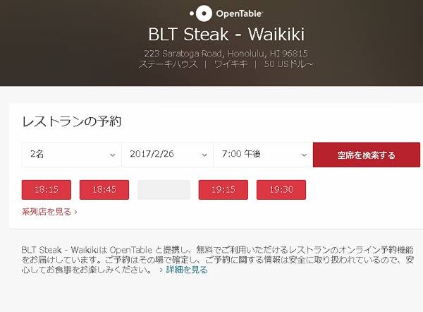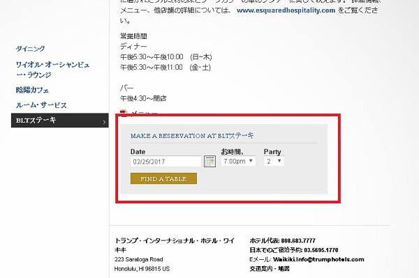 ハワイのトランプインターナショナルホテルワイキキにありますレストランのBLTステーキの予約は、トホームページのレストランのサイトから簡単に予約することができます。