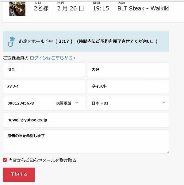 記入が終わりましたら「予約する」をクリックすれば完了です。