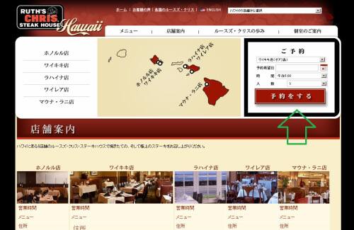 ルースズ クリス ステーキ ハウスのホノルル店もワイキキ店もどちらもホームページから日本語で予約ができます。