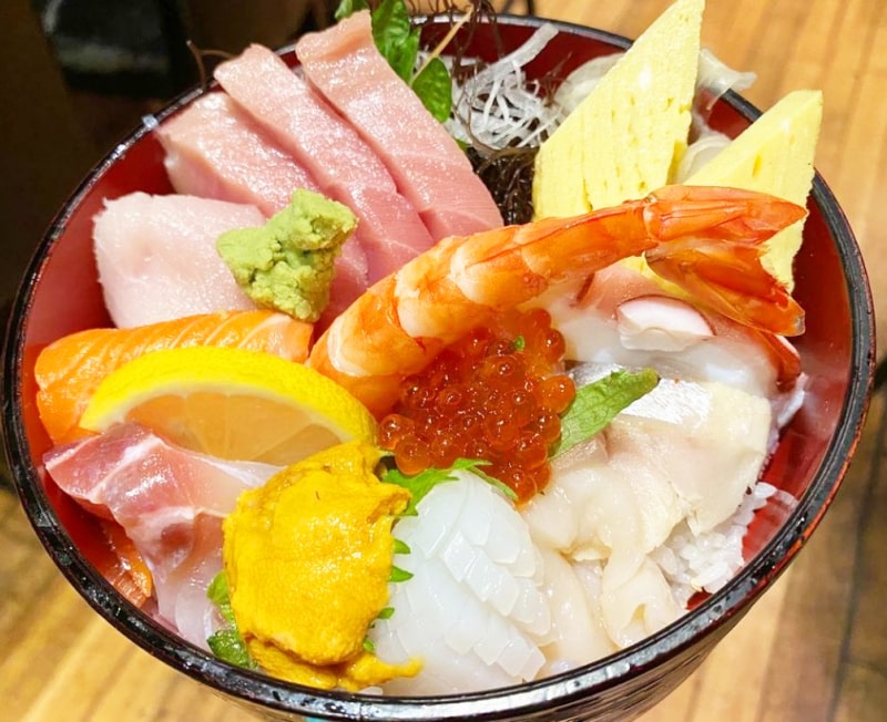 刺身5種盛り(まぐろ、ハマチ、サーモン、白身、サバ) 42.5ドル
