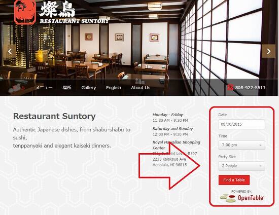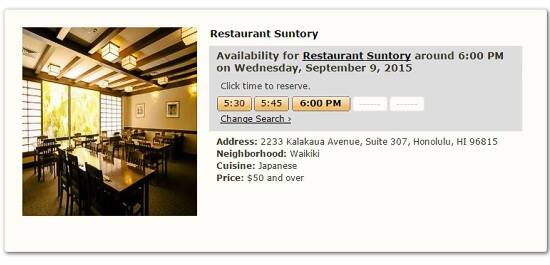 検索で「RESTAURANT SUNTORY Honolulu」と入力しても出てきます。