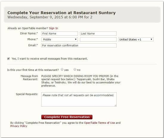 こちらの名前と電話番号とEメールを入力して、「Complete Free Reservation」をクリックすれば予約が完了です。