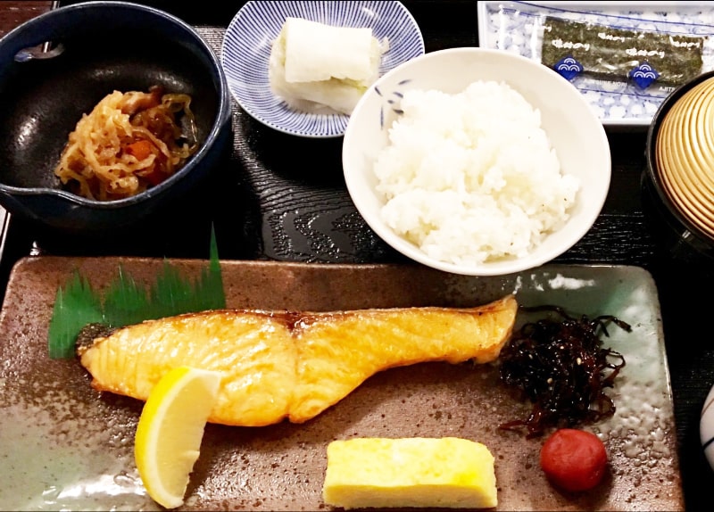 鶴コース 120ドル (焼魚選択:鮭、鯖、銀鱈味噌焼きより)