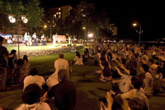 インターナショナル・マーケットプレイスでは1階にあるクィーンズコートで月曜日、水曜日、金曜日にオ・ナ・ラニ・サンセット・ストーリーズ・フラ・ショーが行われています。