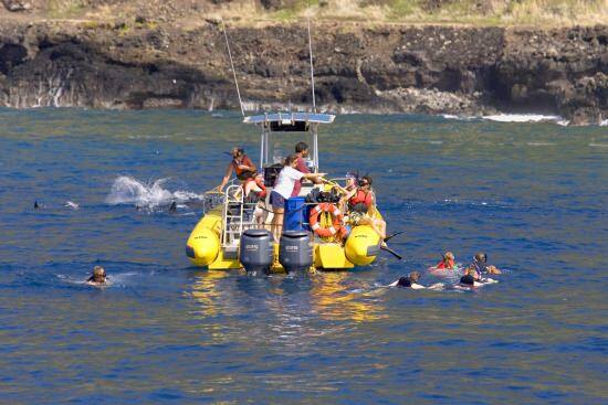 ハワイのイルカは人なつこいのでとても近くで見ることができ、一緒に泳ぐこともできる場合もあります。
