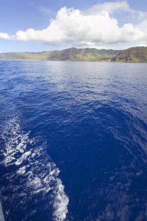 ボートは安定している構造の双胴のカタマランボートで、まずはハワイの儀式を体験します。