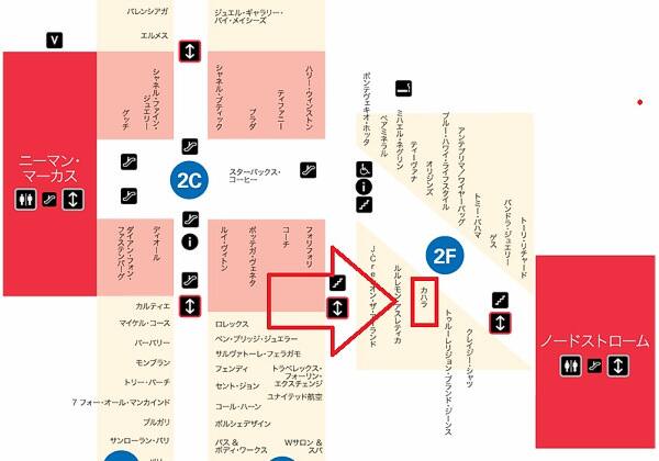 カハラのお店はアラモアナ・センター2階のノードストロームへ向かうコンコース右側にあります。