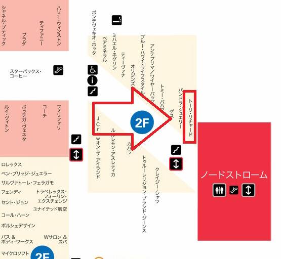 アラモアナセンターのお店の場所は、以前はメイシーズ側にあったのですが、現在は2階のコンコースのノードストローム入り口手前にあります。