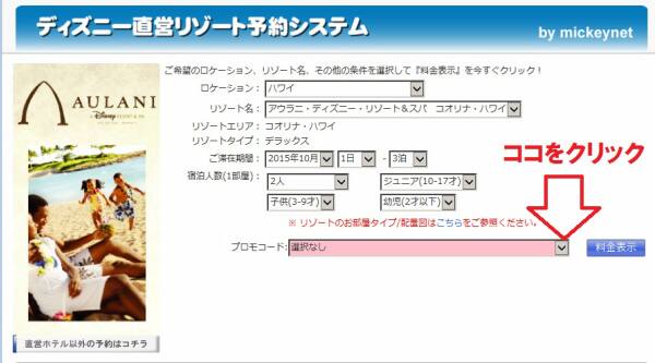 アウラニの予約サイトになりますので、プロモーションによる宿泊代金を調べてみましょう。