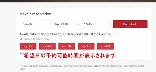 赤い表示となっている時間は予約可能となっています。