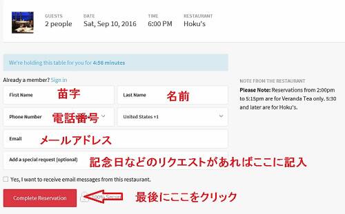 入力が終われば「Complete Reservation」をクリックすれば予約が完了です。