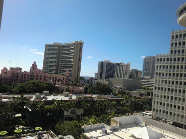 高層階のワイキキ側の部屋からはハワイらしいワイキキのホテル街の景色を楽しむことができます。