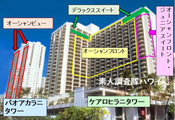 ワイキキビーチマリオットリゾート&スパの宿泊する部屋のカテゴリーは、ケアロヒラニタワーとパオアカラニタワーでそれぞれが次ぎのようになっています。